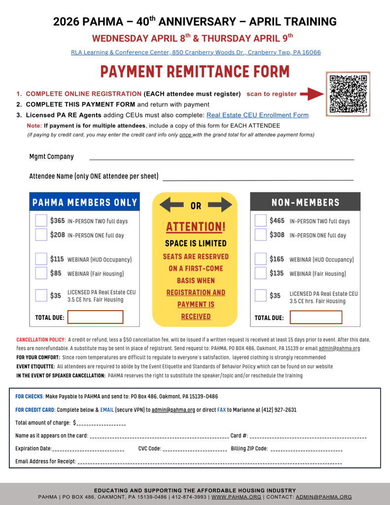 ATTENTION: SEATS ARE LIMITED AND RESERVED ON A FIRST-COME BASIS ACCORDING TO WHEN REGISTRATION AND PAYMENT ARE RECEIVED