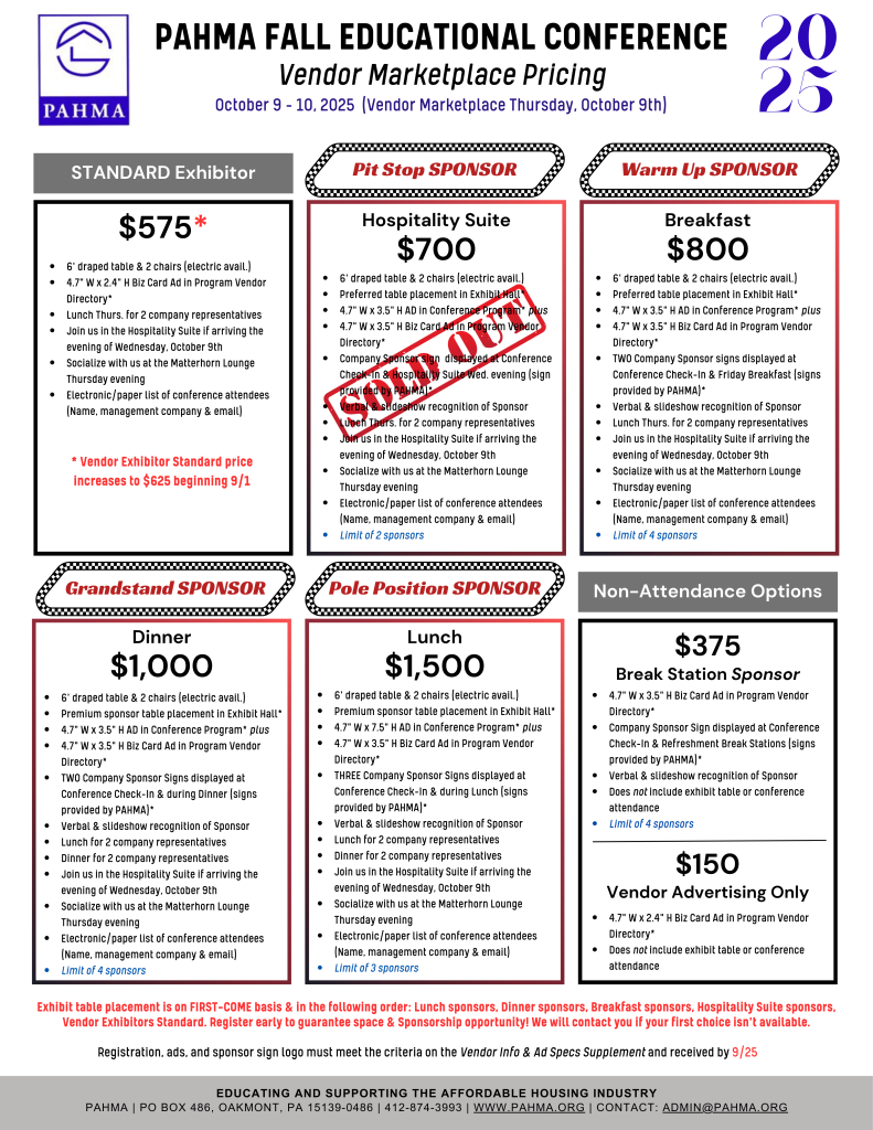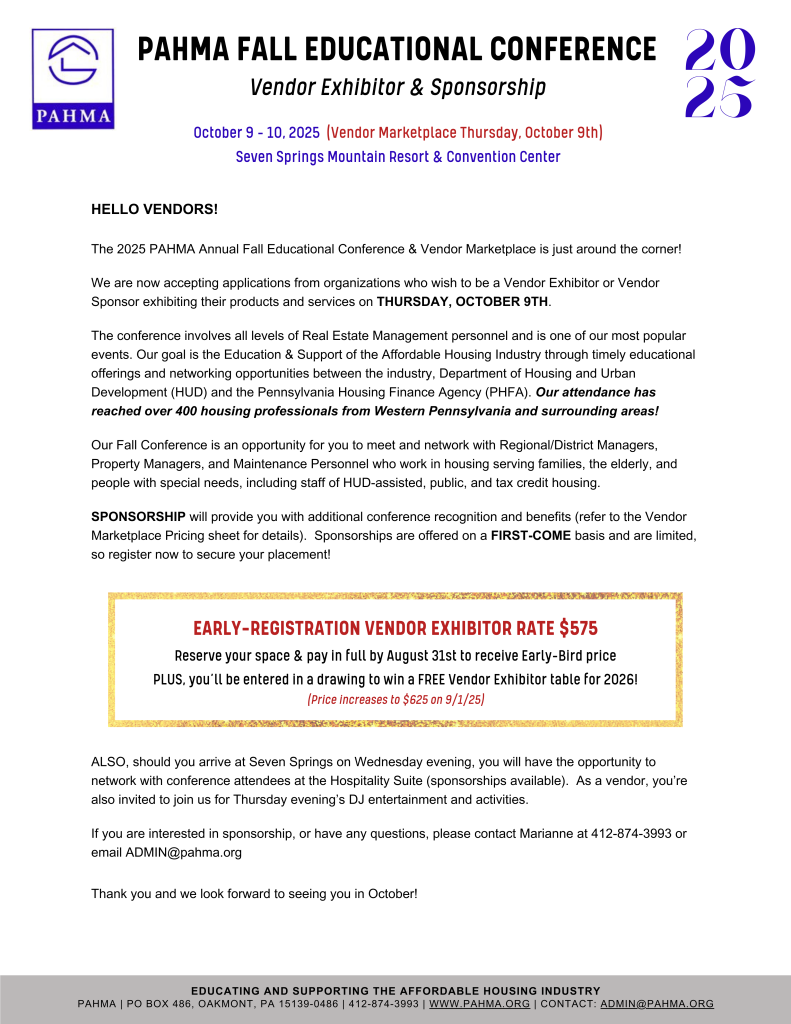 This is PAHMA’s main event of the year and attended by over 400 Affordable Housing Industry Professionals. Become a vendor and/or a sponsor of part of this 2-day educational seminar. Space is limited so submit your application as soon as possible.